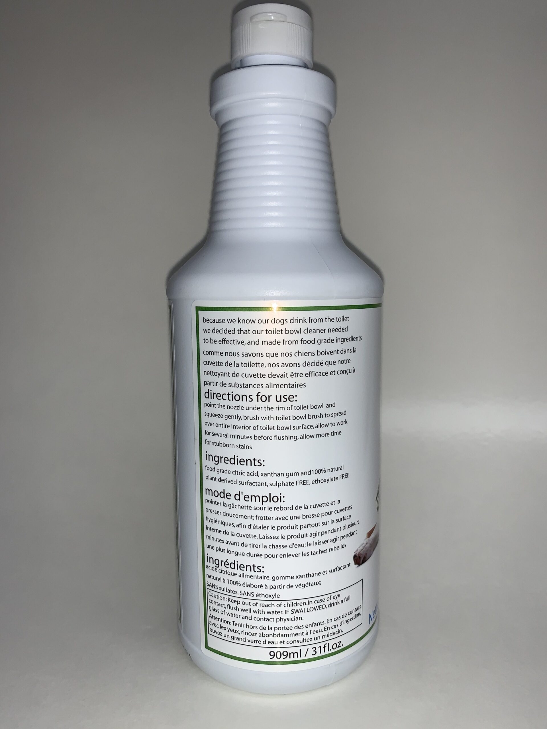 Thirsty Dog is a toxic-free toilet bowl cleaner. Because we know our dogs drink from the toilet we decided that our toilet bowl cleaner needed to be effective and made from food-grade ingredients.